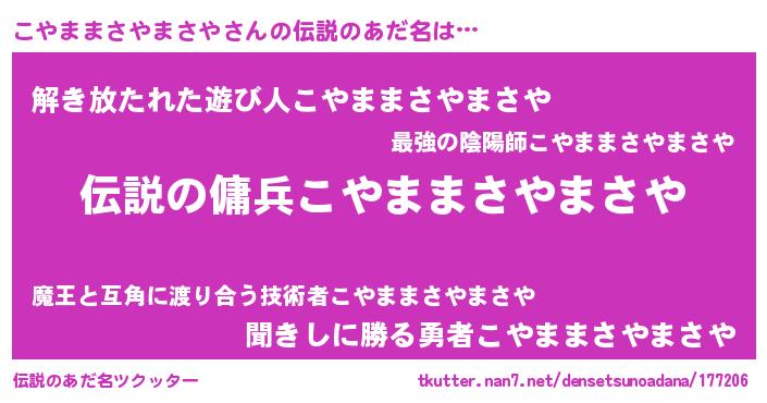 | 意味不明あだ名 | 『自称こやままさやまさや』 |