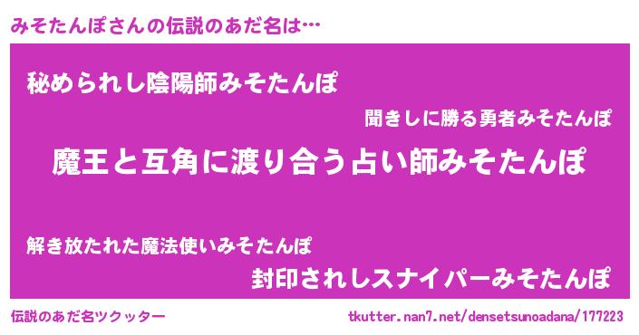 | ヒーロー風カッコイイあだ名 | 『慈愛の使者みそたんぽ』 |