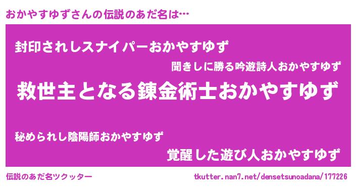 | 意味不明あだ名 | 『自称おかやすゆず』 |