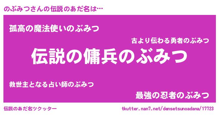 | 女子向けラノベタイトル風あだ名 | 『のぶみつなんてお断りですっ。』 |