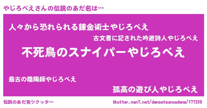 | 意味不明あだ名 | 『自称やじろべえ』『ペロリンやじろべえ』 |