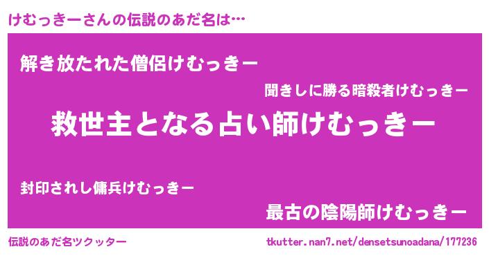 | 男性向けラノベタイトル風あだ名 | 『この素晴らしい世界にけむっきーを!』 |