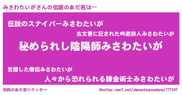 | 意味不明あだ名 | 『みさわたいがフォーエバー』 |