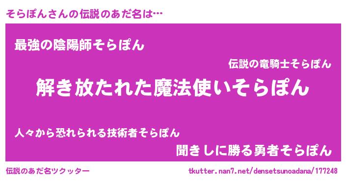 | 意味不明あだ名 | 『とにかく怪しいそらぽん』 |