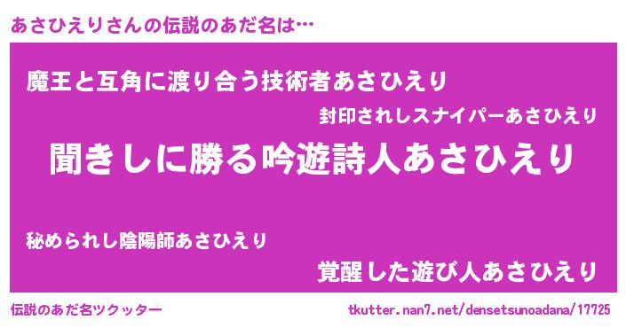 | 意味不明あだ名 | 『永久保存あさひえり』『自称あさひえり』 |