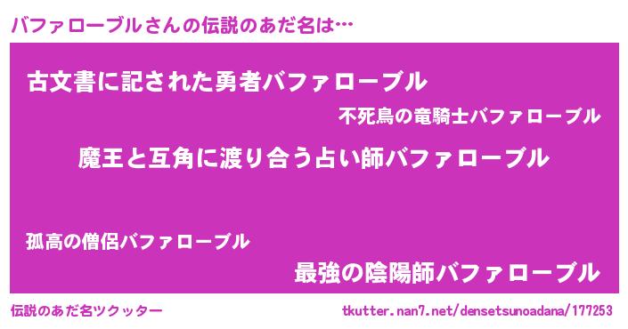 | 意味不明あだ名 | 『住所不定無職バファローブル(40歳)』 |