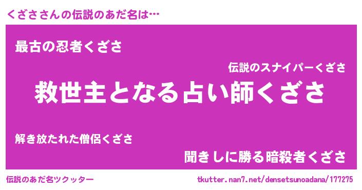 | ヒーロー風カッコイイあだ名 | 『最強戦士クザサ』『愛の使者くざさ』 |