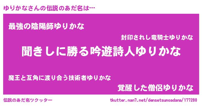 | 意味不明あだ名 | 『永久保存ゆりかな』『自称ゆりかな』 |