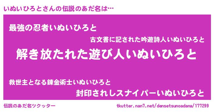 | 意味不明あだ名 | 『とにかく怪しいいぬいひろと』 |