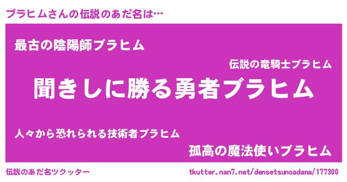 | 男性向けラノベタイトル風あだ名 | 『緋弾のブラヒム』 |