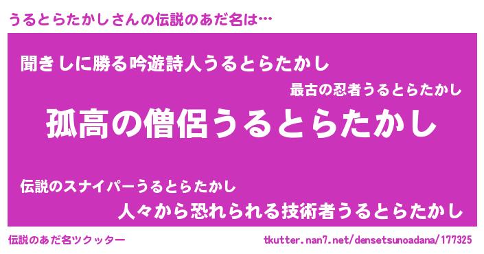 | 意味不明あだ名 | 『住所不定無職うるとらたかし(65歳)』 |