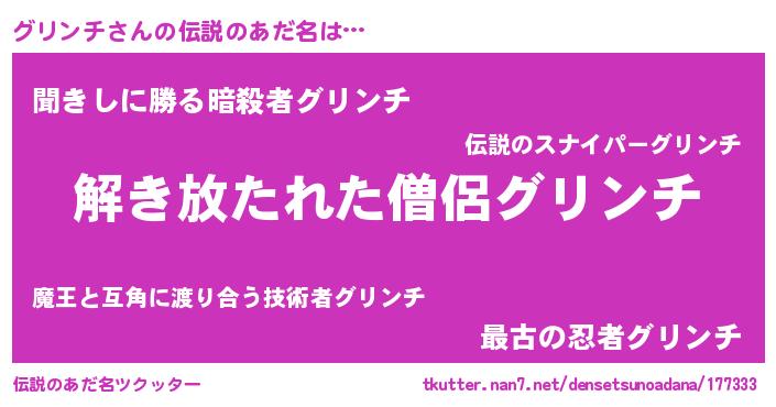 | 意味不明あだ名 | 『なめこ科グリンチ属』『自称グリンチ』 |