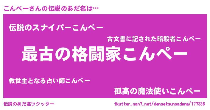 | 意味不明あだ名 | 『自称こんぺー』『こんぺーフォーエバー』 |