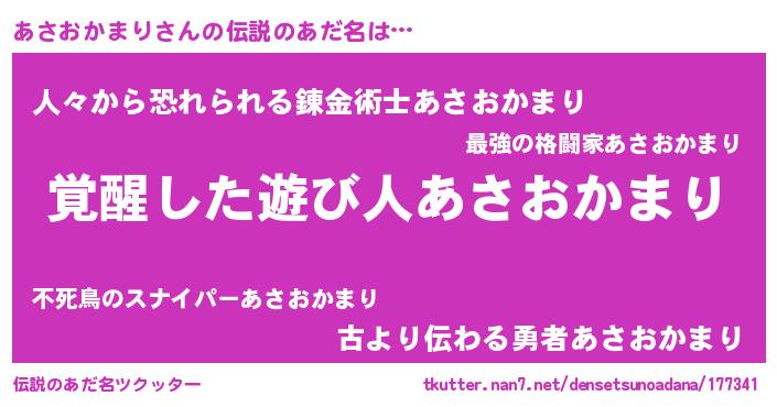 | 意味不明あだ名 | 『住所不定無職あさおかまり(77歳)』 |