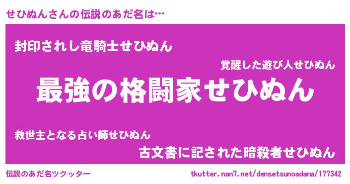 | 意味不明あだ名 | 『せひぬんフォーエバー』 |