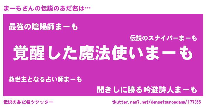| ヒーロー風カッコイイあだ名 | 『天弓騎士マー』『ウルトラまーもマン』 |