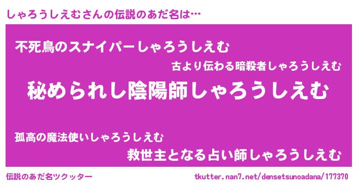 | ヒーロー風カッコイイあだ名 | 『ウルトラしゃろうしえむマン』 |