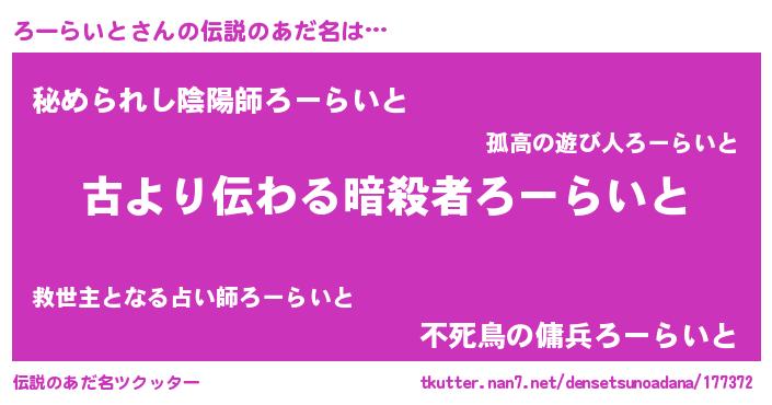 | 肩書あだ名 | 『ろーらいと総統』『ろーらいと副担任』 |