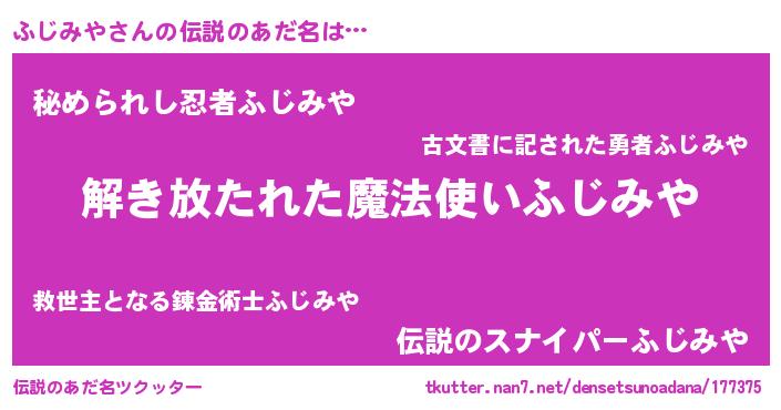 | ヒーロー風カッコイイあだ名 | 『幻影騎士フジ』『ウルトラふじみやマン』 |