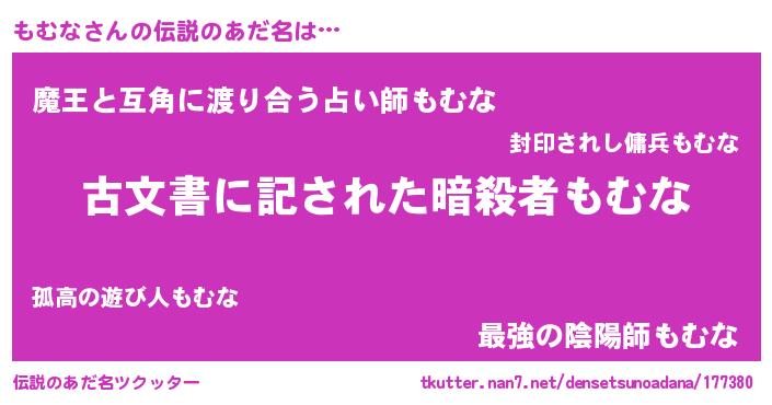 | ヒーロー風カッコイイあだ名 | 『究極戦士モムナ』『仮面モムダー』 |