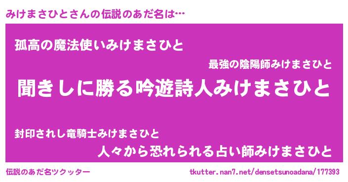 | 意味不明あだ名 | 『永久保存みけまさひと』 |