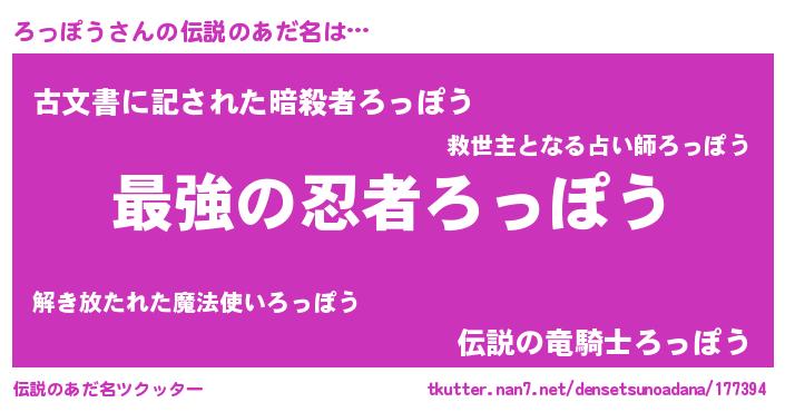 | ファンタジー風あだ名 | 『エターナルロッポウー』『ロッフェル』 |