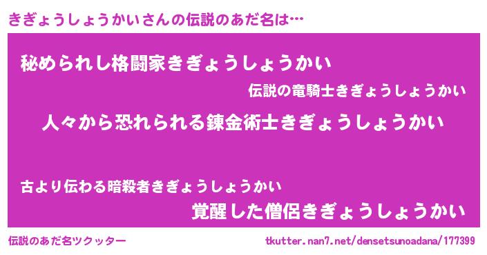 | 意味不明あだ名 | 『住所不定無職きぎょうしょうかい(74歳)』 |