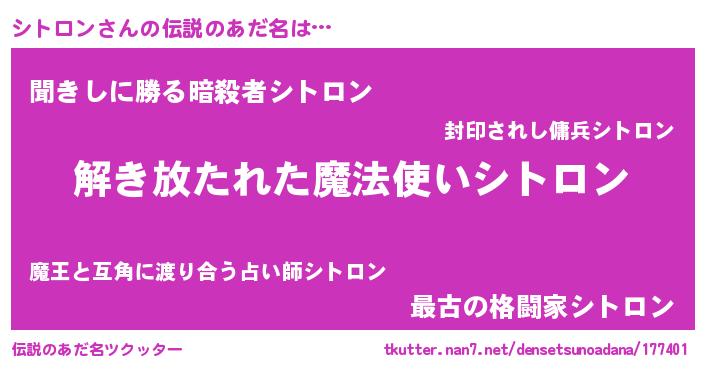 | ポケモン風あだ名 | 『シトゴンZ』『シトセウス』 |