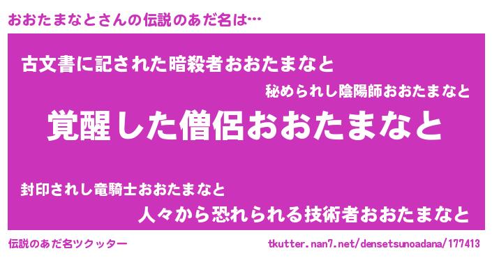 | 男性向けラノベタイトル風あだ名 | 『Re:おおたまなとから始める異世界生活』 |