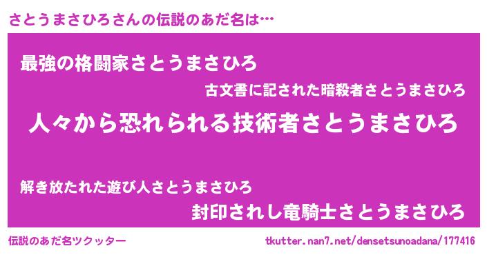 | 意味不明あだ名 | 『自称さとうまさひろ』 |