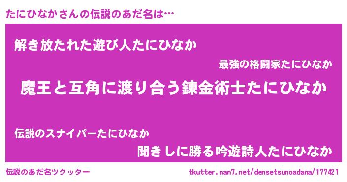 | ヒーロー風カッコイイあだ名 | 『愛の使者たにひなか』『仮面タニダー』 |