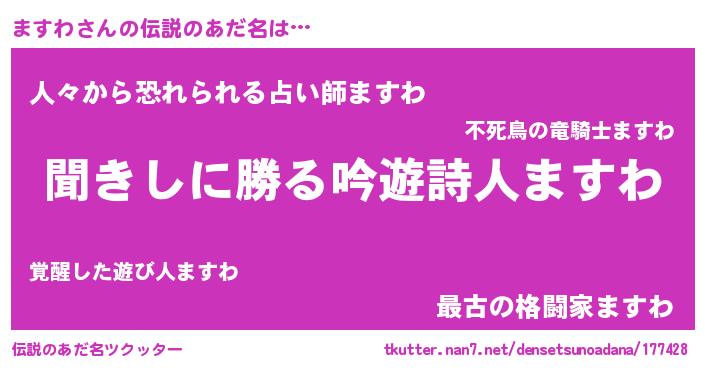 | 女子向けラノベタイトル風あだ名 | 『ますわなんてお断りですっ。』 |