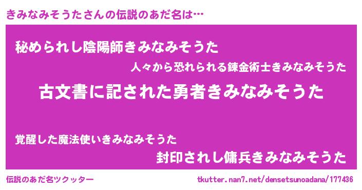 | 胡散臭い通販商品みたいなあだ名 | 『前代未聞の水素水…その名も「きみなみそうた」』 |