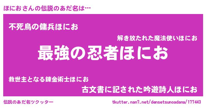 | 胡散臭い通販商品みたいなあだ名 | 『あなたにだけ特別に提供する限定10本のレアな日本酒…その名も「ほにお」』 |