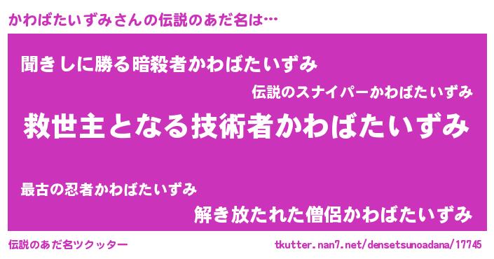 | ヒーロー風カッコイイあだ名 | 『天空の使者かわばたいずみ』 |