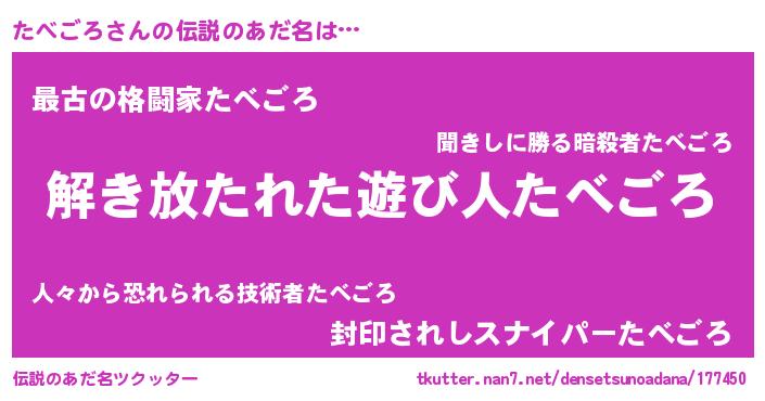 | 意味不明あだ名 | 『とにかく怪しいたべごろ』 |