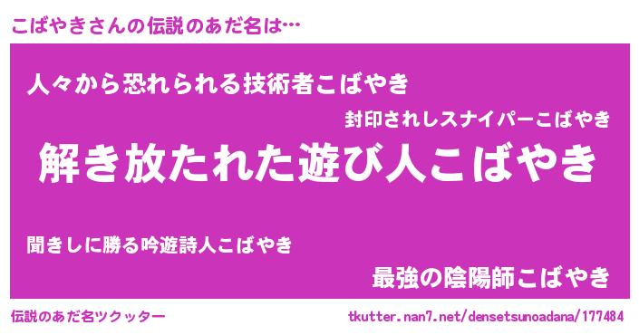 | 意味不明あだ名 | 『とにかく怪しいこばやき』 |