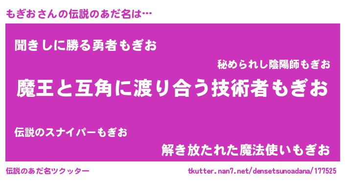 | ヒーロー風カッコイイあだ名 | 『友情の使者もぎお』『ネオモギオ』 |
