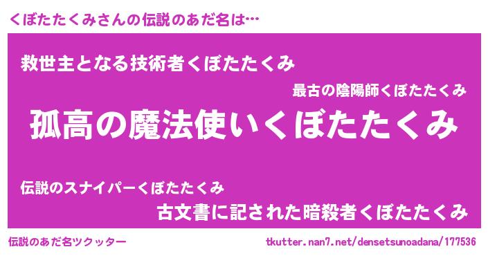 | 男性向けラノベタイトル風あだ名 | 『ダンジョンにくぼたたくみを求めるのは間違っているだろうか』 |