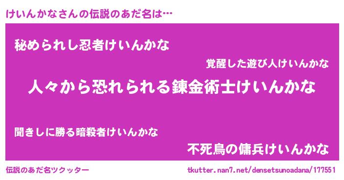 | ヒーロー風カッコイイあだ名 | 『正義の使者けいんかな』『仮面ケイダー』 |
