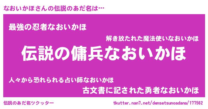 | ヒーロー風カッコイイあだ名 | 『超時空戦士ナオイカホ』『天弓騎士ナオ』 |
