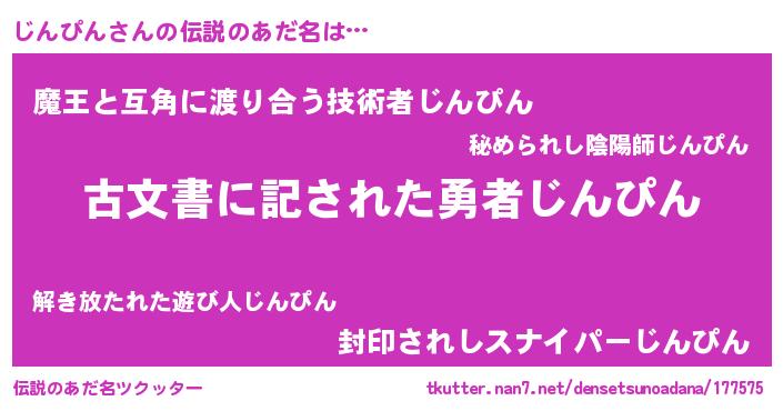 | 意味不明あだ名 | 『永久保存じんぴん』『自称じんぴん』 |