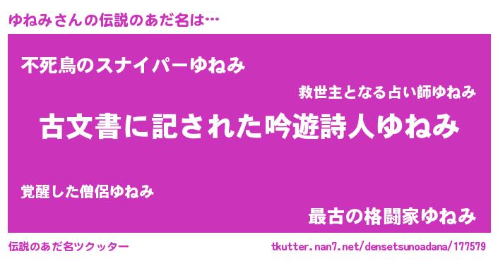 | ヘコむあだ名 | 『ゆねみ(小並感)』『ゆねもー』 |