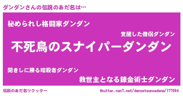 | 男性向けラノベタイトル風あだ名 | 『Re:ダンダンから始める異世界生活』 |