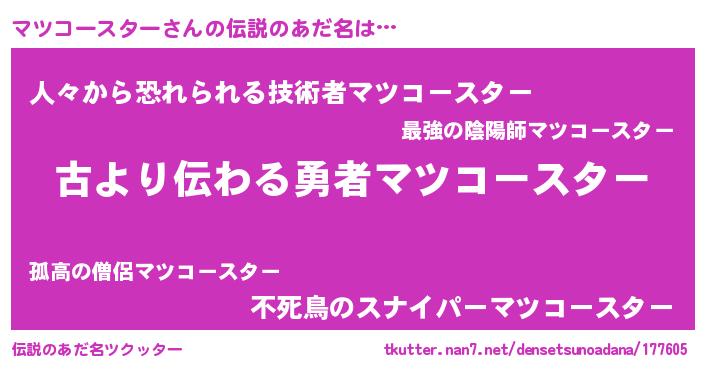 | ヒーロー風カッコイイあだ名 | 『仮面マツダー』『ネオマツコースター』 |