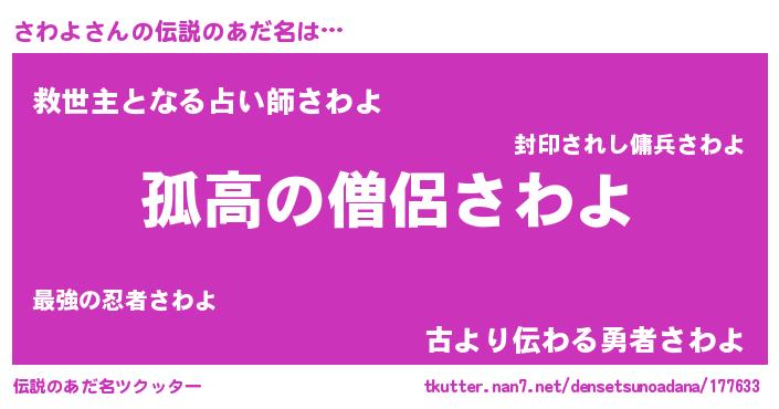 | ヒーロー風カッコイイあだ名 | 『黄金騎士サワ』『慈愛の使者さわよ』 |