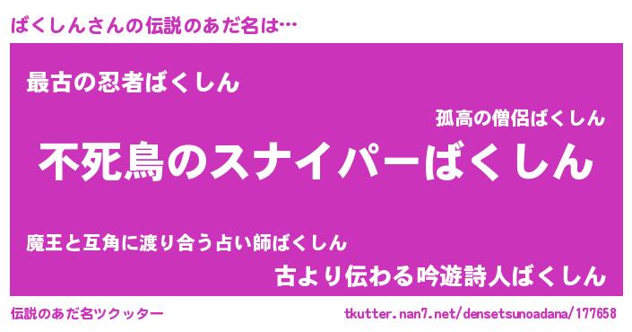 | 胡散臭い通販商品みたいなあだ名 | 『モテモテ間違いなし霊験あらたかなお札…その名も「ばくしん」』 |