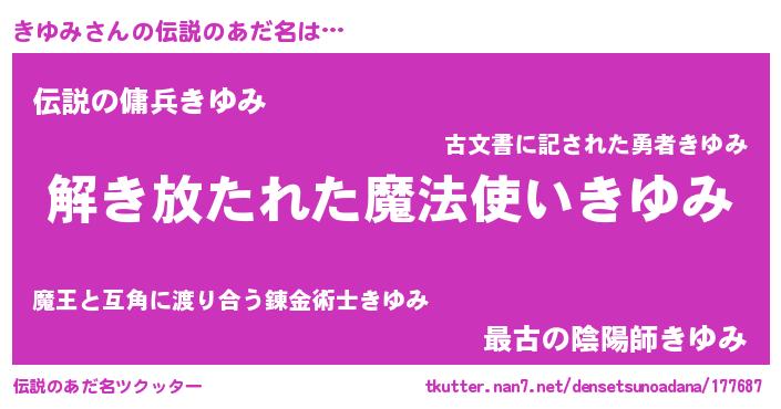 | ヒーロー風カッコイイあだ名 | 『ウルトラ戦士キユミ』『暗黒騎士キユ』 |