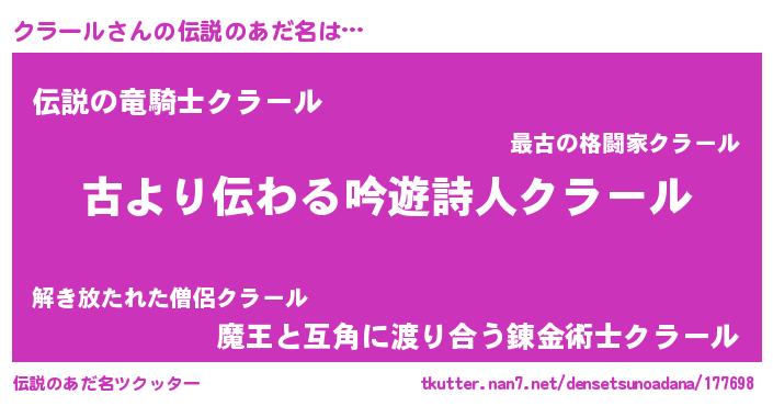 | ヘコむあだ名 | 『クラール(笑)』『クラにー』『豆乳』 |