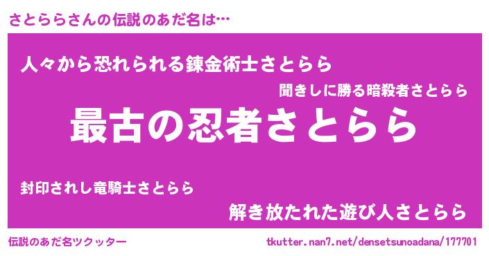 | ポケモン風あだ名 | 『サトラダネ』『サックウザ』 |